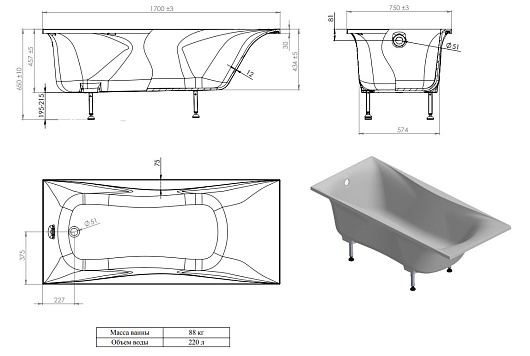 Astra-Form Ванна Вега 170х75, литой мрамор
