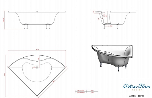 Astra-Form Ванна Виенна 150х150, литой мрамор