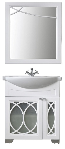 Тумба под раковину Доминикана 75: распашные фасады с вставками из отпескоструенного стекла.