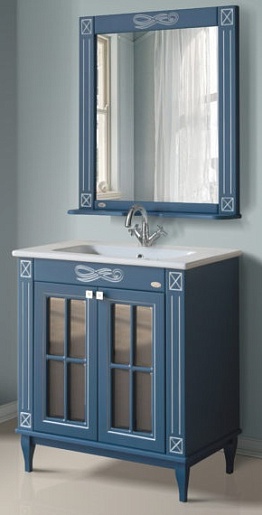 Атолл Мебель для ванной Милана синяя/патина серебро