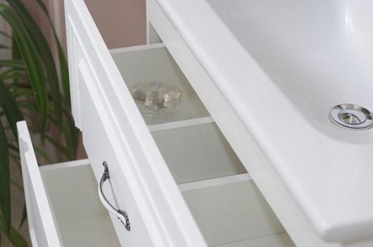 Тумба под раковину Валери 80: ящики на направляющих, обеспечивающих плавный ход и оснащенных встроенным доводчиком..