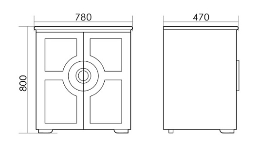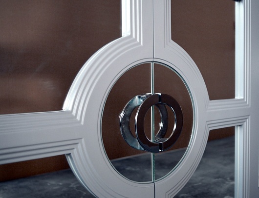 - Тумба под раковину Бишо: два распашных фасада с вставками из зеркала.