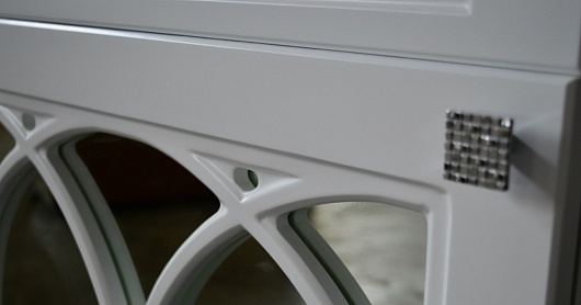 - Тумба под раковину Доминикана 65: распашной фасад с вставками из зеркала.