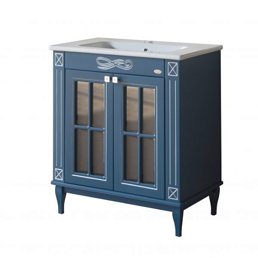 Атолл Тумба с раковиной Милана синяя/патина серебро
