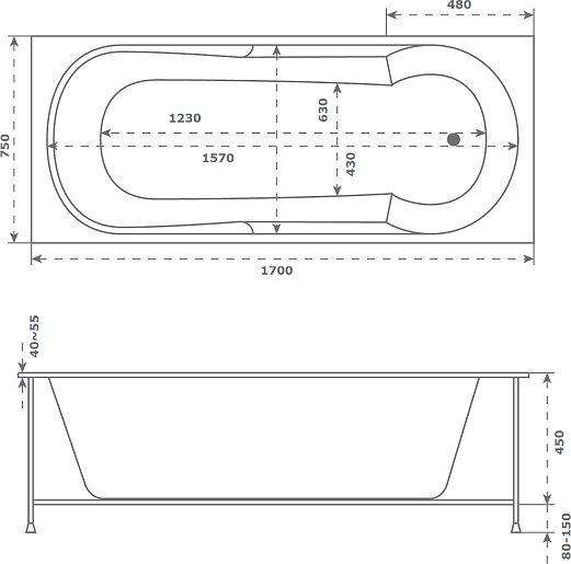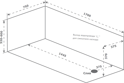 Комплектация: ванна, каркас с регулируемыми ножками, комплект настенного крепежа.