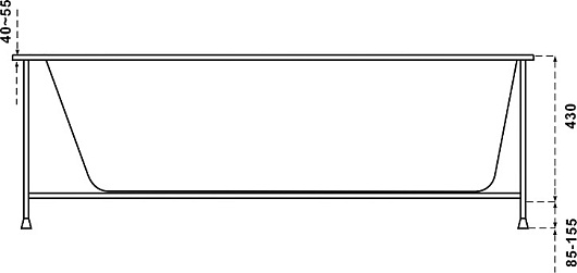 Комплектация: ванна, каркас с регулируемыми ножками, комплект настенного крепежа.