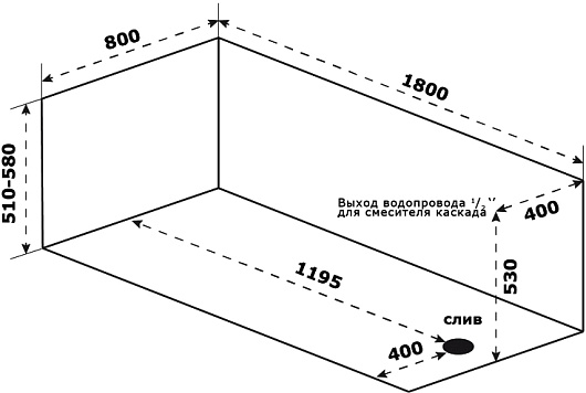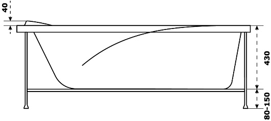 Комплектация: ванна, каркас с регулируемыми ножками, комплект настенного крепежа.