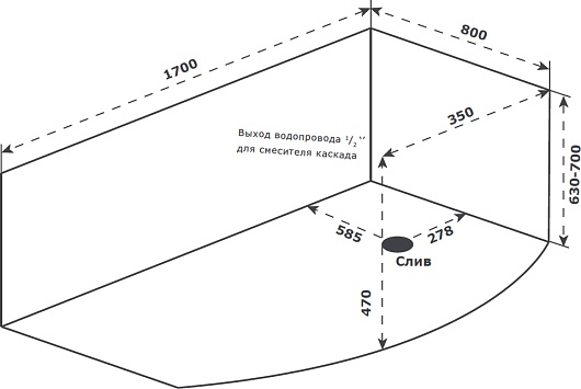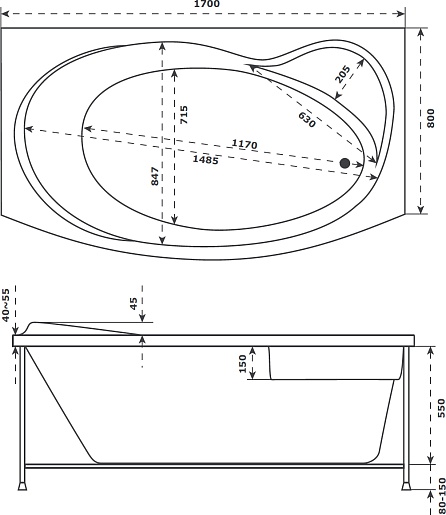 Комплектация: ванна, каркас с регулируемыми ножками, комплект настенного крепежа.