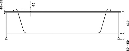 Комплектация: ванна, каркас с регулируемыми ножками, комплект настенного крепежа.