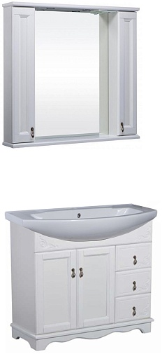Bas Мебель для ванной Варна 105 белый, глухие дверцы, 3 ящика, зеркало-шкаф