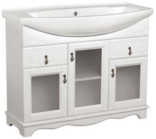 Тумба под раковину Варна 105 белый, вставки стекло, 2 ящика