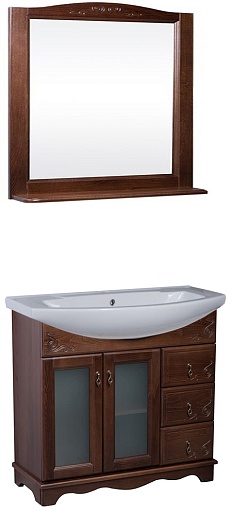Bas Мебель для ванной Варна 105 орех, вставки стекло, 3 ящика, зеркало