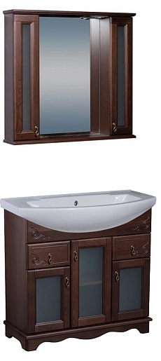 Зеркало-шкаф для ванной Варна 105 орех, вставки стекло