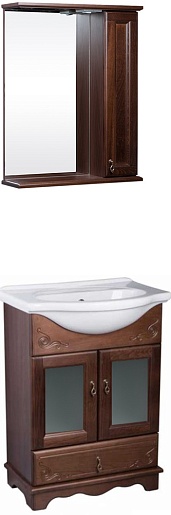 Bas Мебель для ванной Варна 60 орех, вставки стекла, ящик, зеркало-шкаф