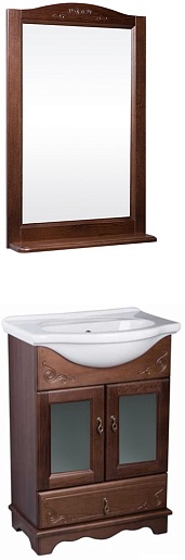 Bas Мебель для ванной Варна 60 орех, вставки стекло, ящик, зеркало
