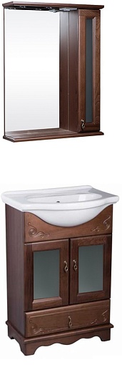 Зеркало-шкаф для ванной Варна 60 орех, вставки стекло