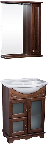 Bas Мебель для ванной Варна 60 орех, вставки стекло, зеркало-шкаф