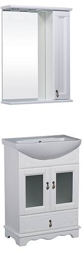 Bas Мебель для ванной Варна 65 белый, вставки стекло, ящик, зеркало-шкаф