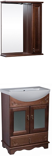 Bas Мебель для ванной Варна 75 орех, вставки стекло, ящик, зеркало-шкаф
