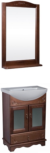 Bas Мебель для ванной Варна 75 орех, вставки стекло, ящик, зеркало