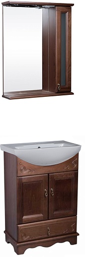 Зеркало-шкаф для ванной Варна 75 орех, вставки стекло