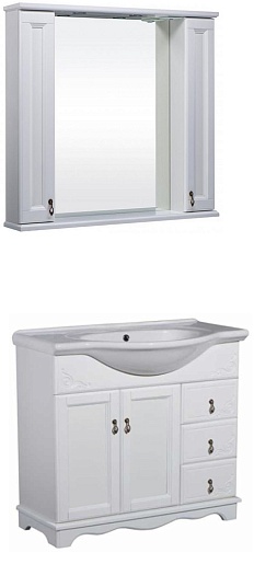 Bas Мебель для ванной Варна 85 белый, глухие дверцы, 3 ящика, зеркало-шкаф