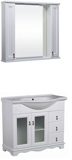 Bas Мебель для ванной Варна 85 белый, вставки стекло, 3 ящика, зеркало-шкаф