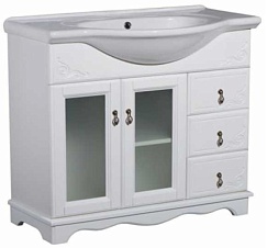 Тумба под раковину Варна 85 белый, вставки стекло, 3 ящика