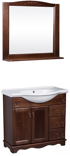 Bas Мебель для ванной Варна 85 орех, глухие дверцы, 3 ящика, зеркало