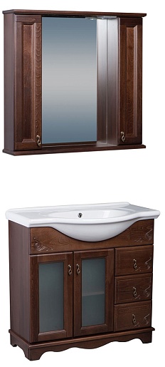 Bas Мебель для ванной Варна 85 орех, вставки стекло, 3 ящика, зеркало-шкаф