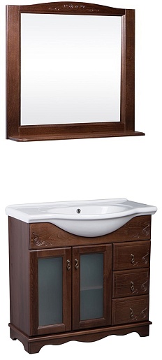 Bas Мебель для ванной Варна 85 орех, вставки стекло, 3 ящика, зеркало