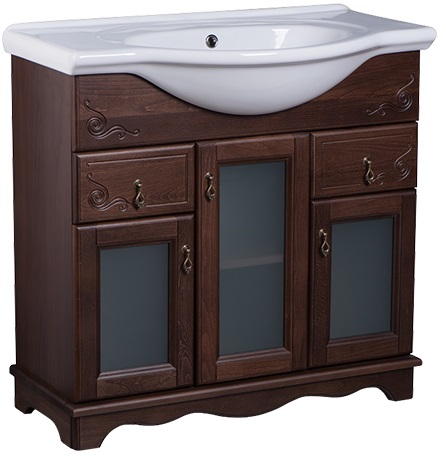 Тумба под раковину Варна 85 орех, вставки стекло, 2 ящика