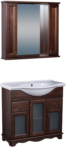 Bas Мебель для ванной Варна 85 орех, вставки стекло, зеркало-шкаф