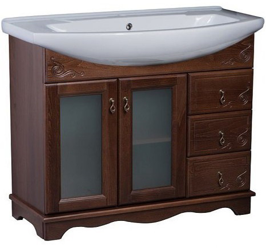 Bas Тумба под раковину Варна 105 орех, вставки стекло, 3 ящика