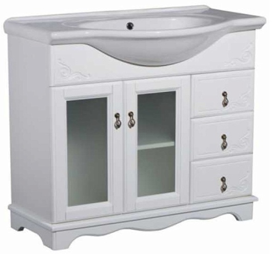 Bas Тумба под раковину Варна 85 белый, вставки стекло, 3 ящика