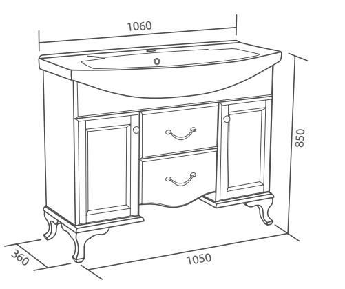 - тумба под раковину: 2 распашных дверцы, вкладные полки, 2 ящика,4 ручки, 4 резных ножки, комплект доводчиков.