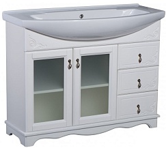 Bas Тумба с раковиной Варна 105 белый, вставки стекло, 3 ящика