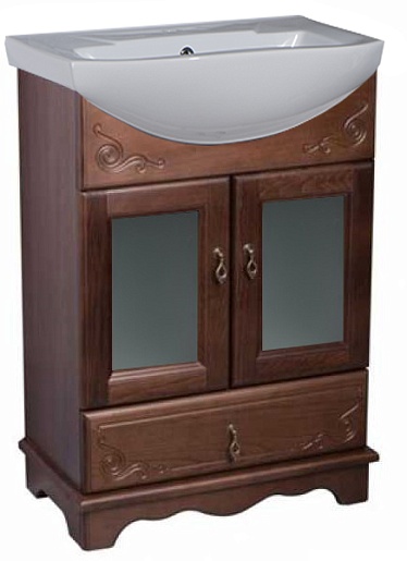 Bas Тумба с раковиной Варна 65 орех, вставки стекло, ящик