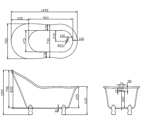 BelBagno Акриловая ванна BB08-CRM, ножки BB-LEG-LION-CRM