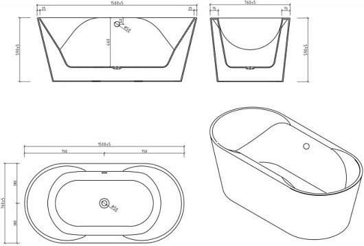 В комплекте: ванна, слив-перелив (хром), ножки.