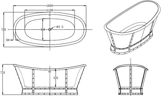 Акриловая ванна BelBagno BB33-CF36 168x78.