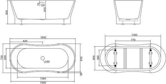 В комплекте: ванна, ножки, слив-перелив (хром).
