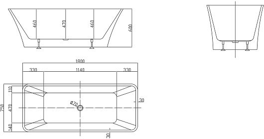 В комплекте: ванна, слив-перелив (хром).