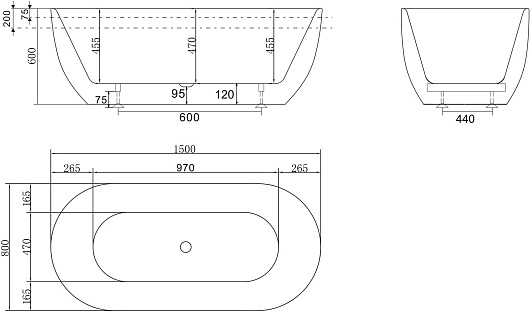 В комплекте: ванна, слив-перелив (хром), ножки.