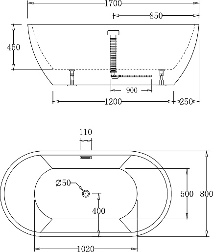В комплекте: ванна, слив-перелив (хром), ножки.