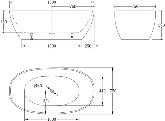 Акриловая ванна BelBagno BB81-1500 150x75.