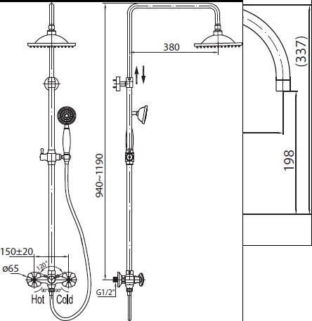 Душевая система SLIPОписание: Душевая колонна со смесителем для верхнего и ручного душа, регулируемым верхним душем в комплекте с ручным душем.