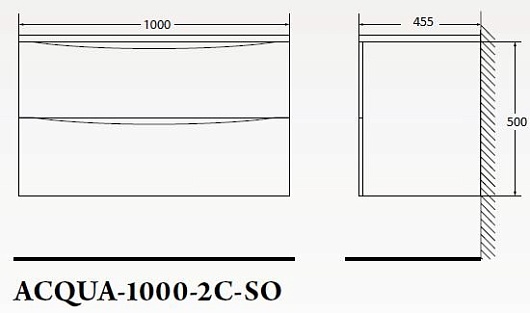 - База под раковину подвесная с двумя выкатными ящиками, с доводчиками, ACQUA-1000-2C-SO-RVB