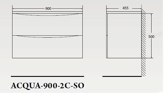 - База под раковину подвесная с двумя выкатными ящиками, с доводчиками, ACQUA-900-2C-SO-CVG