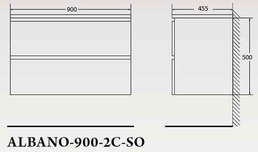 - База под раковину подвесная с двумя выкатными ящиками, с доводчиками, ALBANO-900-2C-SO-RR